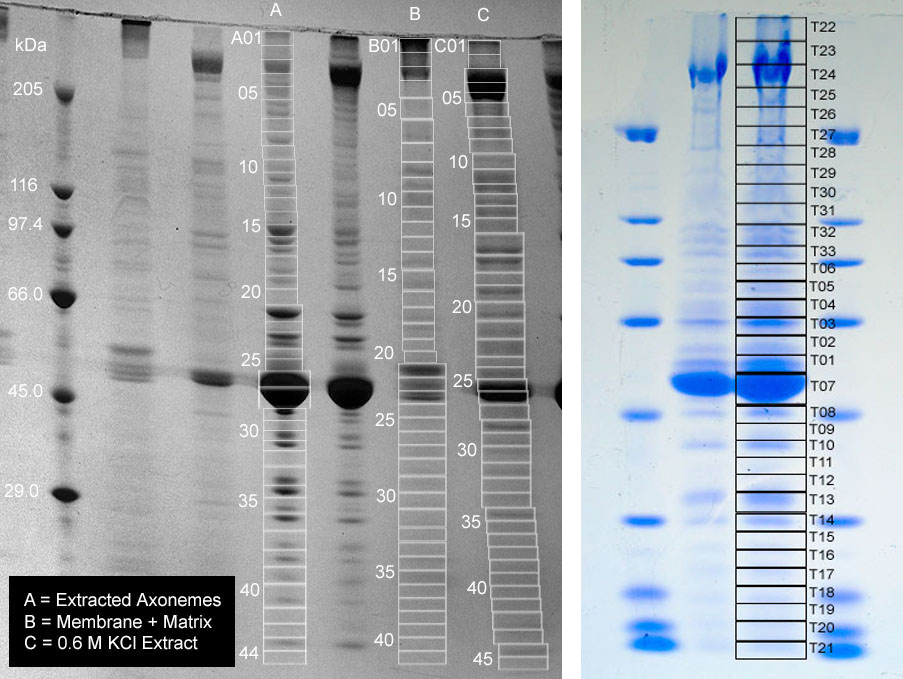 Pazour et al. Witman 2005) = 19 | 2 Axonemal Peptides | 2 M+M Peptides | 10 KCl Peptides | 5 Tergitol Peptides